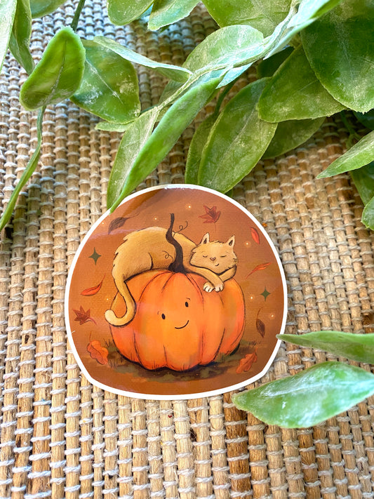 Cat and Pumpkin Snuggle Vinyl Sticker
