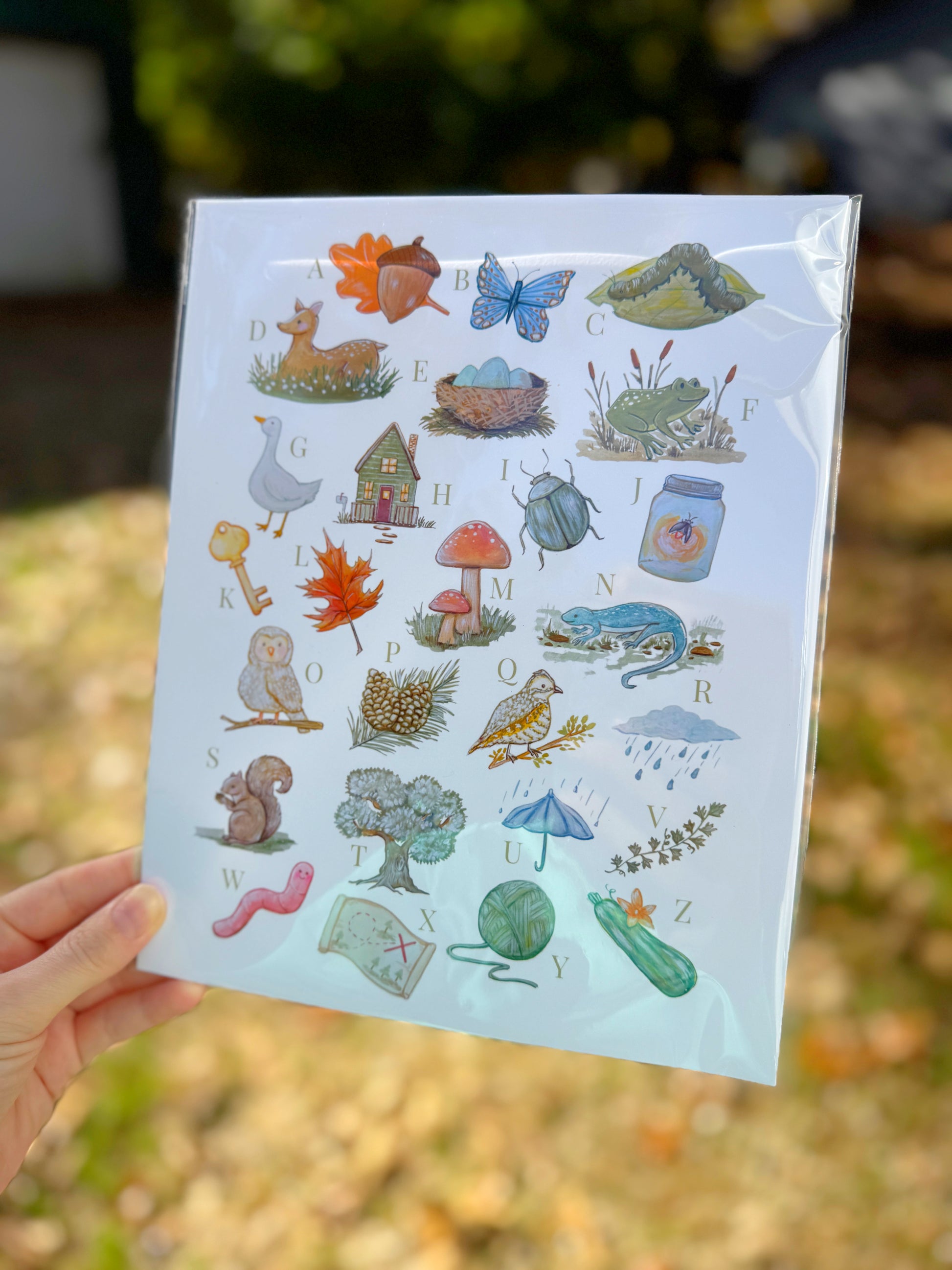 Hand illustrated Alphabet Poster Art Print- Nature inspired