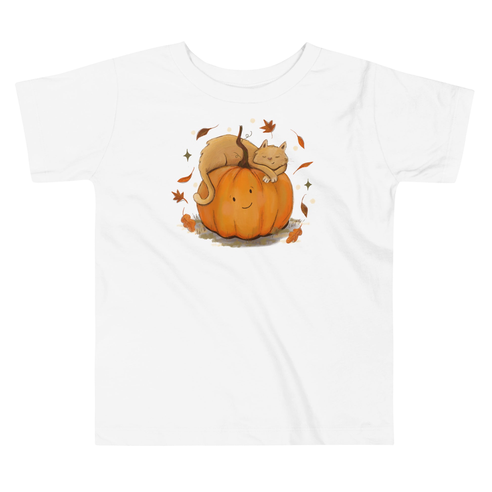 Cat and pumpkin snuggle- cute Halloween and Fall shirt. Toddler Sizing. An original illustration printed on a super soft tee.