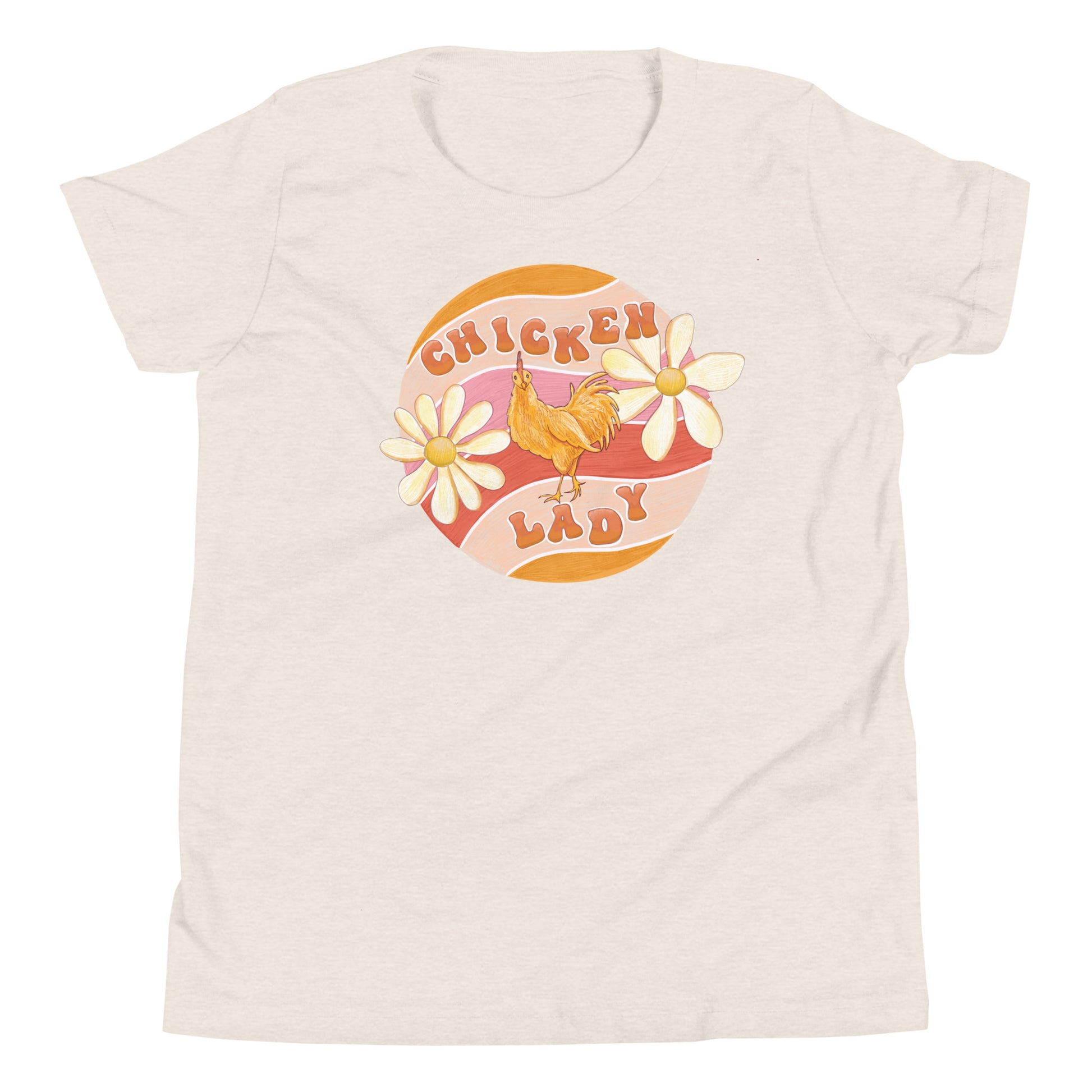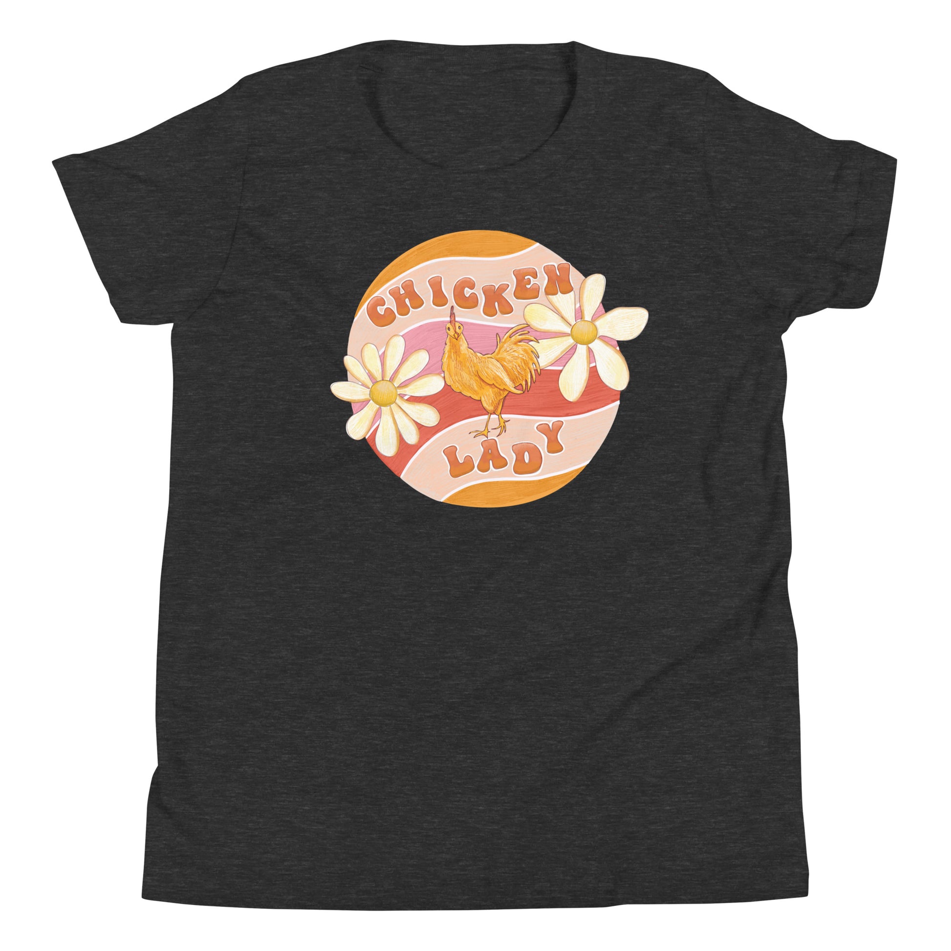 For your little chicken lady! Youth sizing. An original illustration printed on a super soft tee!